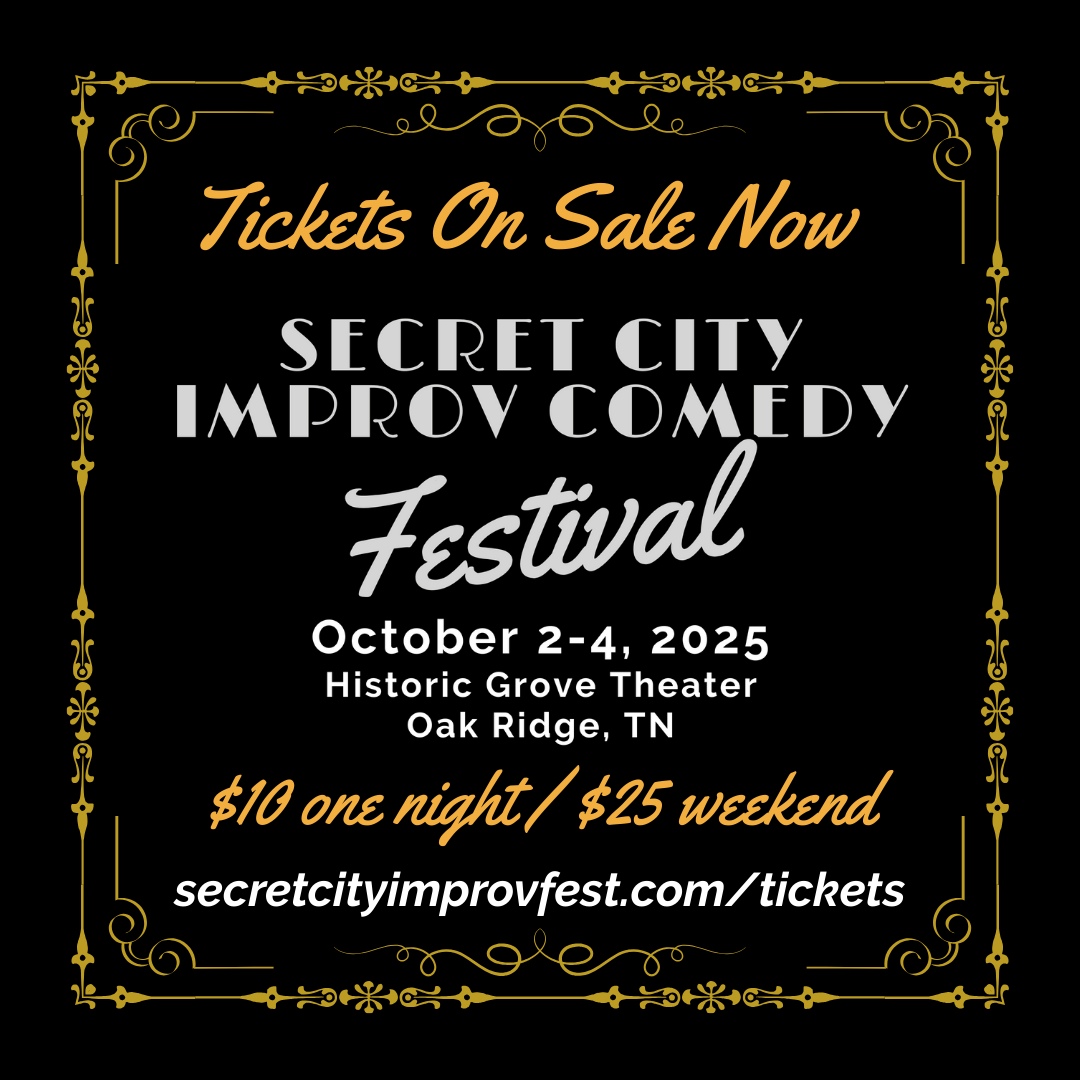 Itβs official! The Secret City Improv Comedy Festival returns October 2β4, 2025 for a laughter-filled weekend in Oak Ridge. With performers coming in from across the U.S., including hometown favorites like Einstein Simplified, Pretend Friends, and ImproBob, this yearβs event promises to be unforgettable.